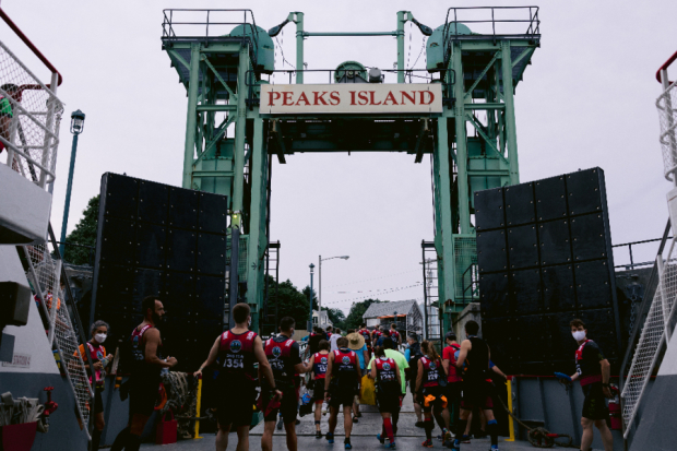 Athletes had to wear masks on the Casco Bay Lines ferry ride from Portland out to the starting islands due to federal transportation guidelines but otherwise it was racing as usual.