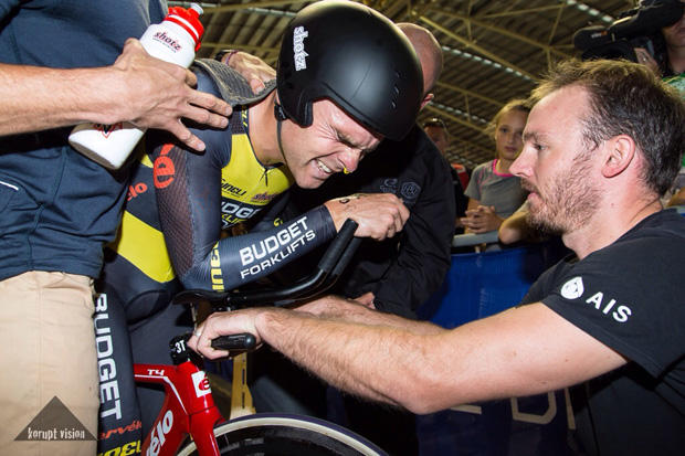 A few days ago Jack Bobridge started his 1-hour record braking attempt in Melbourne, Australia with fury but in the end the 2012 Olympic Silver medalist who rides for Team Budget Forklifts fell short of the record set by Matthias Brändle of IAM Cycling. Afterwards some folks said that he should have paced himself more early on, but it is always easy to be a Monday morning quarterback. I personally appreciated his no risk, no gain attitude and here now is a video from that attempt shot and edited by Korupt Vision.