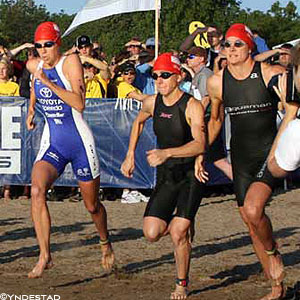 In its 35 years of existence, triathlon’s emergence as a professional sport which could sustain the careers of an elite class might be charted like those illustrations in evolution textbooks. You remember, they featured a progression from fish coming on land, four legged dinosaurs, apes propelling themselves with hands and feet, bent over Neanderthals, to erect men. And triathlon’s initial emergence as a workout to spice up the monotony of bored runners and the epic amateur challenge of the Ironman has its own subsequent professional evolutionary landmarks.