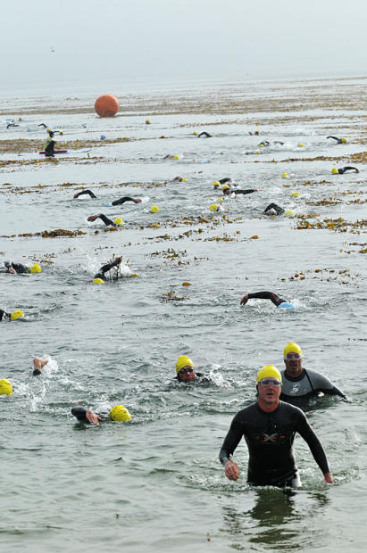 The tide was low and the swim start sprint long for the age groupers on Saturday.