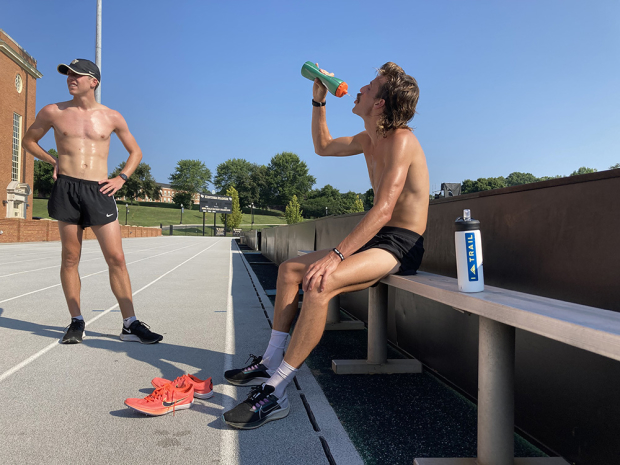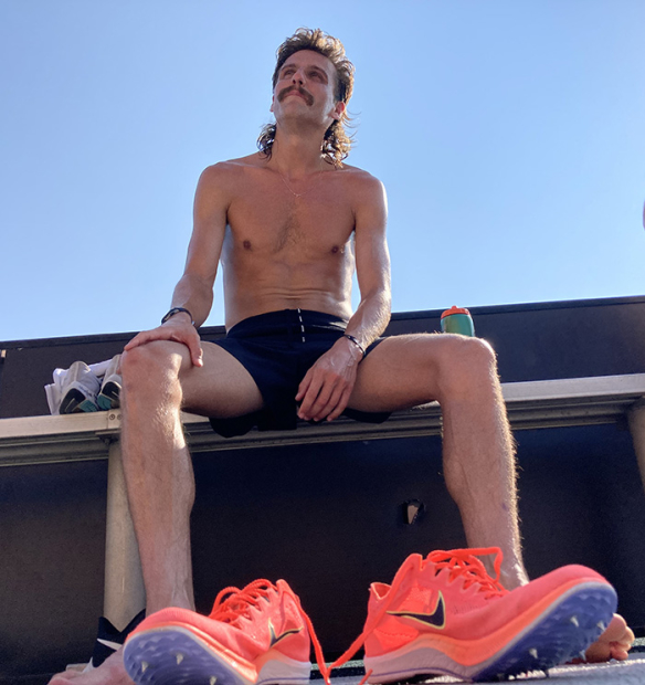 Craig Engels narrowly missed going to Tokyo to race the 1,500 meters, and he thus went home to North Carolina to reset and plan what is next. His dad is actually my neighbor, but I had never spotted Craig here until last week. I returned from picking up my boys from summer camp and I spotted two agile fast looking runners on our street and one of them had a very distinctive haircut. I slowed down the car, rolled down the window, and we finally met. My other neighbor has a very cool gym in his backyard and that is where they were headed after their running workout, and that gym is visible behind Craig in the final picture. Craig jumped over the fence and we had a longer chat about this and that and he was also curious about my pain cave. My Woodway 4Front got a big thumbs up and he was also very interested in Zwift. He wore a very basic Timex watch on his wrist and told me that he isn't on Strava either – luckily for all runners in town. A couple days later on Thursday, July 29th we then sat down to conduct this interview, and here is what he had to say.