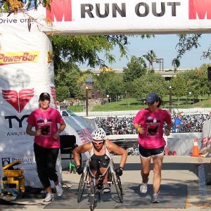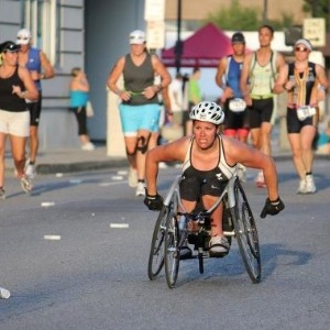 However, my inexperience got the best of me. Just three miles from the finish, I was coming down the final hill on the course, got going faster than I should have, lost control of my racing chair and crashed going 32 mph. I ended up finishing the race, bloody knees and broken racing chair and all, but missed the cut-off time by 19 minutes.