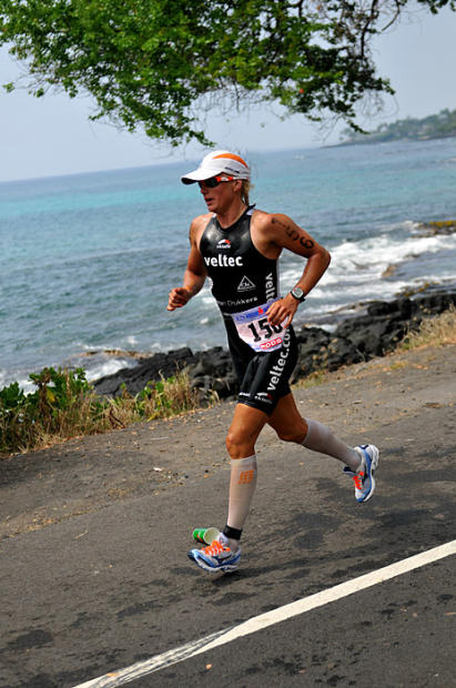 An Old School revolutionary prevailed among the women in 2006 as Michellie Jones, the 1992-1993 ITU short course world champ, upended Natascha Badmann’s reign. Jones topped Badmann 54 to 1:06 on the swim, gave back 7 minutes on the bike, then found her 3:13 marathon good enough to top gastrointestinally challenged Badmann’s 3:27:54 run. That same year, Normann Stadler made sure nobody thought his 2004 It’s-About-the-Bike 2004 win was a flash in the pan. Stadler’s record-smashing 4:18:23 bike gave the Normannator 10 minutes on rival Macca, just enough to hold on for a 71-second margin of victory. But 2007 was quite another story. Michellie Jones dropped out when a pre-race ear infection made it impossible to continue and a very fit, 40-plus Natascha Badmann was denied a chance to defend against an onslaught from the new guard due to a bad crash on the bike. That left Kona 2007 to a duel between well-known rookie Sam McGlone and unknown dark horse Chrissie Wellington, who had been a pro for all of eight months. Wellington won, the most shocking rookie debut since Luc Van Lierde. Mirroring the dropout rate of best women, 2005 men’s champ Faris Al-Sultan, 2004 and 2006 champ Normann Stadler and many other Germans were felled by gastro woes. When the dust had cleared, McCormack fulfilled a career-long dream to take the win by 3:30 over Kona rookie, consummate professional, Craig Alexander. In 2008, overdog Chrissie W backed up her Kona debut with a repeat, while Macca dropped out with cable troubles and Crowie well and truly earned the crown he inherited with a great 2:45 run.