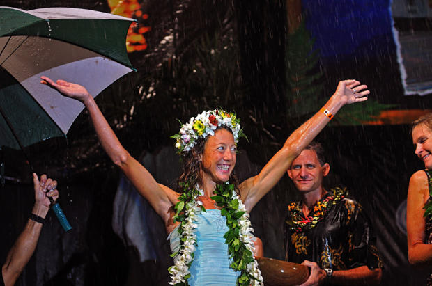 Wellington went from the biggest longshot winner in Kona history to someone so prohibitively favored that she would have been the biggest upset loser. Despite the bungled CO2 cartridges, not a chance. Nor could a drenching rainstorm at the awards ceremony erase that smile.