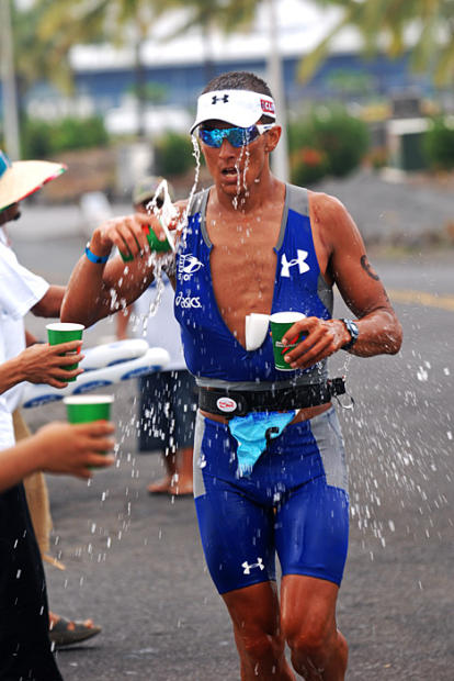 Macca cools off during his red-hot 2:46:02 run which came within 71 seconds of overtaking Stadler.
