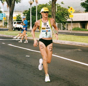 Ken: Of the Hawaii races, I would pick three. One being 1988 in which I was 3rd because that was my best placing. Another was 1995 because that was my most steady and consistent race. I had my fastest time and a nice marathon at the end. The last of the 3 would be 1997. I was struggling on the run and nearly at the point of giving up. I remembered what my daughter had said that morning – something I still remember whenever I am struggling in a race – “Daddy, never give up”. So I continued on and with about 6 miles to go things really turned around and despite not running fast I was able to hold it together and finish pretty well.