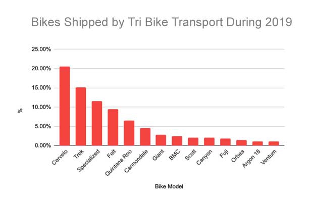 But what about tri bike sales in the U.S.? A brand count at IRONMAN Wisconsin will be Trek-heavy, because Madison is Trek country and that event’s clientele will come from within 500 miles of the starting line. Events held in Chattanooga will show a pumped-up number of Quintana Roos. TriBike Transport’s count is as good as you can get at what bikes triathletes are buying, and not just the pointy end of the spear, which is what Kona gives you.