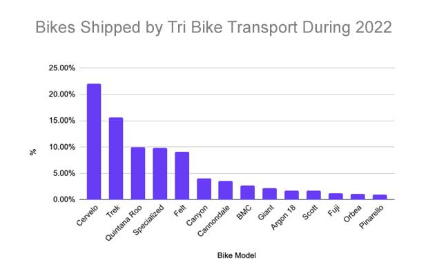About 97 percent of all TBT’s bike transports are to triathlons. There is the odd gravel race or gran fondo, but it’s 5 figures (over 10,000) bikes a year and it's mostly triathlon. Even if the events were held in Canada or Mexico TBT’s customer originated in the U.S. This is what the count looked like for 2022.
