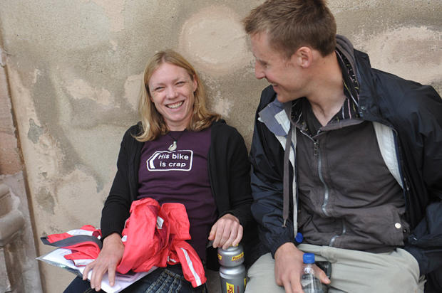 Two amigos greet Roth’s dawn with gusto, ready to race.