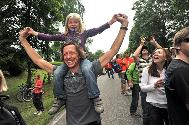 A father offers his daughter the best seat in the house to observe the exuberant madness on Solarerberg.