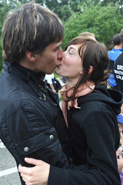 Inspired by the tumult and shouting on Solarerberg, a couple share a kiss.