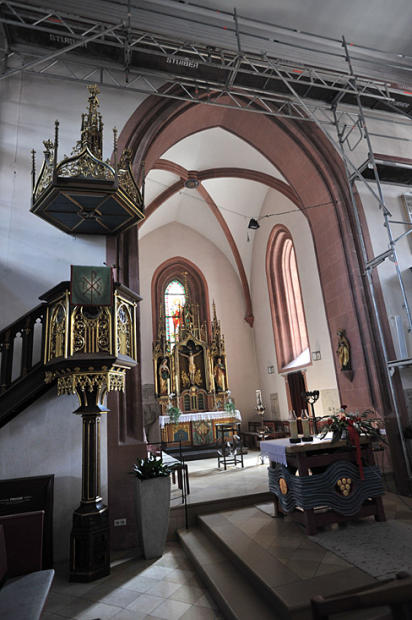 Roth’s 15th century Gothic church is undergoing renovation. But its spirit and beauty transcends the workmen’s scaffolding.