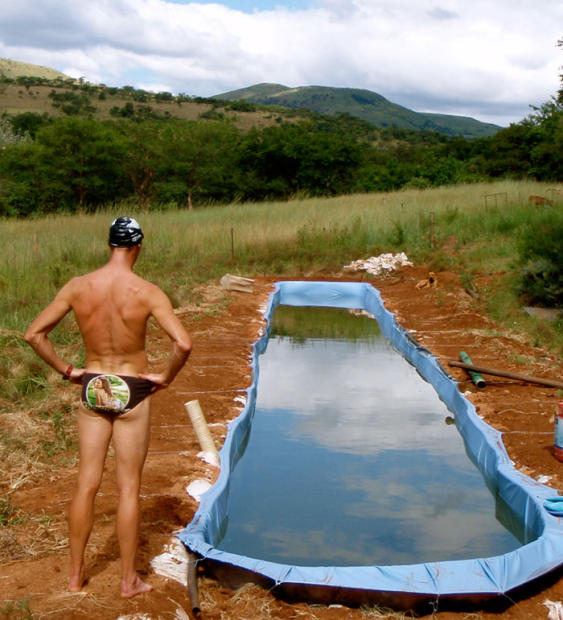 A couple years ago Conrad Stoltz decided to personally build a pool in his backyard in Roodewalshoek, Lydenburg, South Africa. Not a small project for anybody, but the 3-time XTERRA World Champion had the added pleasure to do all of this without the luxury of electricity.