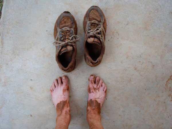 Dirty legs and somewhat clean feet.