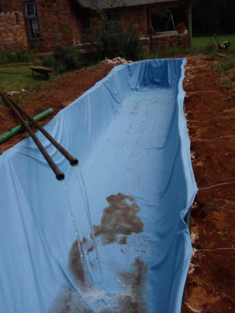 The pool is finally getting filled.