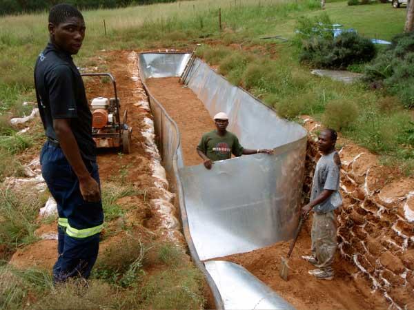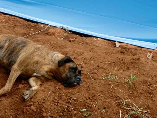 After a lot of digging, filling, carrying and placing 2,500 five-pound sand bags and plenty of mud and sweat, Conrad Stoltz's pool is finally done.