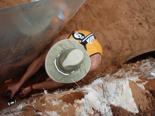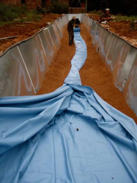The plastic liner is getting installed.