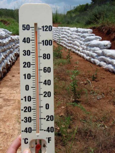 Stamping down the sand bags with a thumper instead of a hard workout.