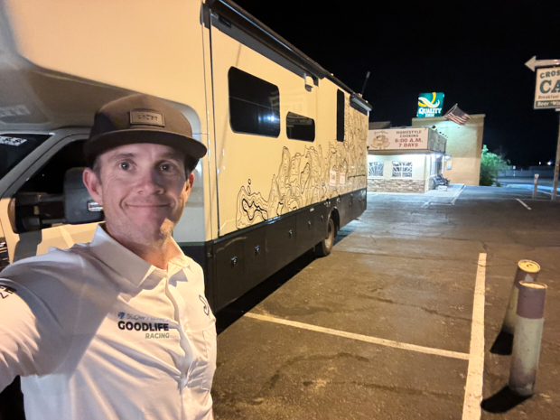 We then had 8 hours to figure out where we wanted to grab a hotel so that the B group could get some sleep and shower. Before the A group stopped, the B group did their first “8-hour shift”. We found a hotel only two blocks from the course route and three blocks from a gas station in Parker, CO. We had the RV set up, and the food was ready. But we chose to have the riders come to us and take a minute to do the swap—the nighttime swaps would also be a little longer. I decided to take an extra 5-10 Mins once every 24 hours to ensure that everyone had what they needed.