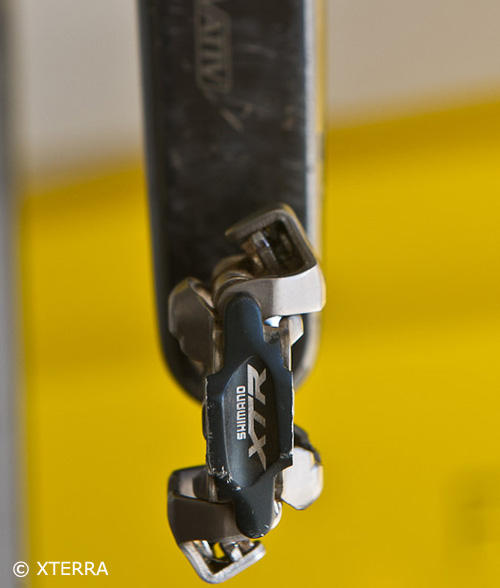 But Lance has opted to ride SHimano XTR pedals. His sponsor SRAM isn't in the pedal business.