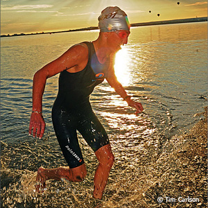 Joanna: I have some great sponsors this year. Guru has custom built me a beautiful pink and black Crono that fits like a glove. My Crono is outfitted with Profile aerobars and HED wheels. PowerBar keeps me fueled during my training and racing. Rudy Project keeps my noggin protected from pavement and my eyes safe from the elements, and blueseventy wetsuits and speedsuits keep me warm and fast in the swim. PowerTap has helped me dial in my bike training, and I have gone through enough SaltStick tabs to keep a dozen triathletes hydrated.