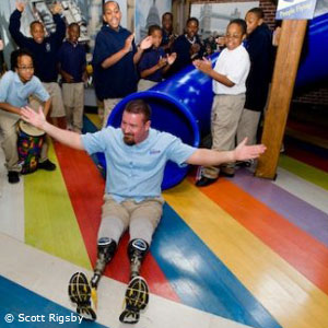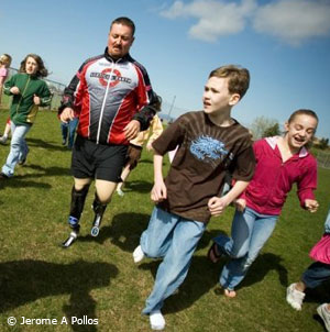 Scott: I am very excited about the direction and opportunities for the Scott Rigsby Foundation. The idea was birthed in 2006 after I participated in a prosthetic running study comparing amputee runner's to able-bodied runners. A Georgia Tech Phd student, Beth Brown, a fellow multiple Ironman finisher, helped me realize how many gaps existed in the industry for truly enabling amputees to live an active lifestyle. The SRF has three primary focus areas including raising funds to further prosthetics research and technology for running and cycling; providing grants to wounded soldiers and the physically challenged to enable their athletic pursuits; and, in partnership with two international nonprofits, establishing prosthesis communities in developing countries.