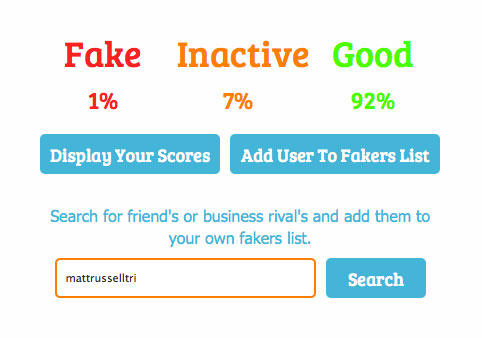 We published an article about the top 55 Pro triathlete tweeters and there have been questions raised if all numbers were legitimate, so we dug deeper into that issue. We used a now popular tool called Fakers that has been applauded by the folks at TechCrunch and Mashable and below are the numbers spit out by that site when we added the top 5 International male and the top 5 North American male twitter handles.