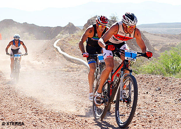 Josiah Middaugh of Vail, Colorado and Flora Duffy of Bermuda won the XTERRA West Championship in the Nevada desert terrain of Lake Las Vegas.