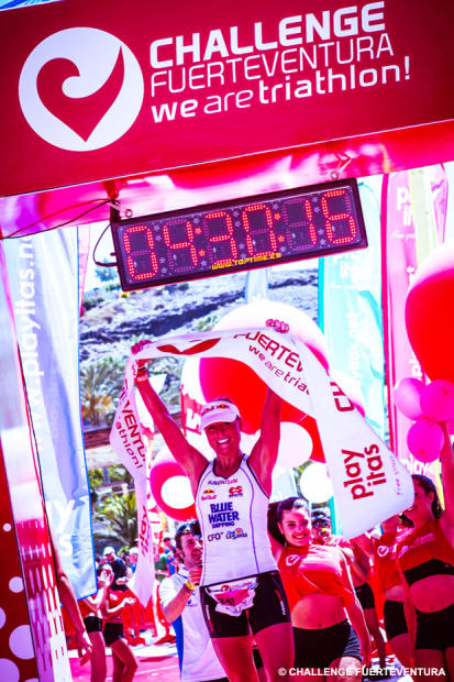 Formula One former World Champion driver Jenson Button was the most famous competitor on the day, drawing many fans to the beautiful resort in the Canary Islands. The world class driver performed a pro-quality swim and a credible bike split, but the amateur triathlete withdrew with muscle pains on the run.