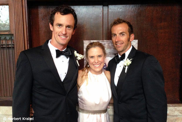 We are used to see Pro triathletes either in Lycra or in otherwise casual outfits and it is quite rare to see them really dressed up. This weekend Guy Crawford, Kate Bevilaqua and Chris McDonald came to Winston-Salem, NC for the wedding of Wattie Ink athlete John Shilt to Heather Jenkins and they all looked very sharp. Crawford and McDonald actually were ushers at the wedding and could have fooled anyone into thinking that they were Pro ushers. Congrats also to the happy couple.
