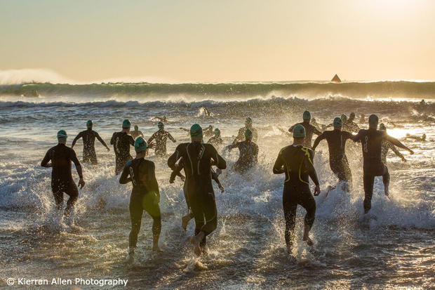 The men’s race began with an all-out battle on the swim led by Clayton Fettell of Australia in 21:47, followed closely by fellow Aussie Sam Betten (21:51), then a minute’s gap before a large pack of fish-fast fellows including Canadian Brent McMahon (22:51), 2012 Aussie Kona champ Peter Jacobs (22:56), Aussie Tim Reed and Kiwi Matt Franklin (22:57), Aussies Tim Van Berkel and Mitch Robins (22:58), Aussies Luke McKenzie (23:00 and Craig Alexander (23:01).