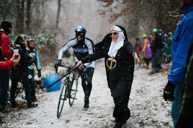 On a day in the Northeast where must folks sought refuge near their fireplace in their home, a rowdy crowd in Philadelphia, PA spectated and competed in the 2013 Single Speed Cyclocross World Championships. Cold temperatures and snow seemed to actually inspire the crowds even more and good times were seemingly had by all. We don't really know who won, nor do we really care, but it is a wonderful display of not letting the weather get the best of you. Kudos to all who spectated and competed.