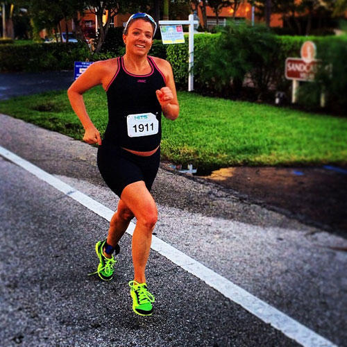 Luke McKenzie announced today “So proud of my gorgeous girlfriend @bethwalsh just finished the HITS Naples sprint tri 5 1/2 months pregnant! Yes. We are having a baby at the end of May. Exciting times!”