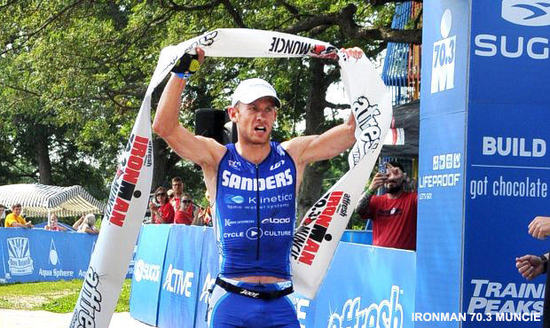Sanders, who won Muskoka 70.3 last year with a 1:10:58 run and took Ironman 70.3 runner-up finishes this year at Raleigh and Syracuse with eerily similar 1:09:56 and 1:09:55 run splits did it again at Muncie.