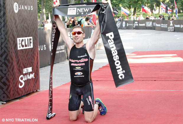 Collins combined a current-aided, 2nd fastest 12:01 swim split in the Hudson River, a race-best 56:12 bike split and a 4th-fastest 33:07 run through Central Park to finish in 1:44:59 with a 31 seconds margin of victory over Cameron Dye and 2:35 over 3rd-place finisher, 4-time Wildflower long course champion Jesse Thomas.