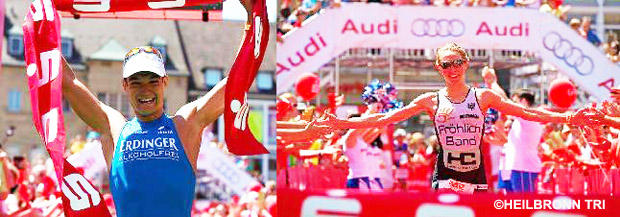 Andreas Dreitz of Germany proved once again he belongs among the best in the world at the middle distances with a third victory over stellar opposition in 2014, this time at the City of Heilbronn Triathlon. Fellow German Svenja Bazlen, coming off a win at the Abu Dhabi International short course and a 3rd at Ironman 70.3 Panama, buried all opposition with a dominant bike split to take the women's crown at this 2k swim-70k bike-15k run event.