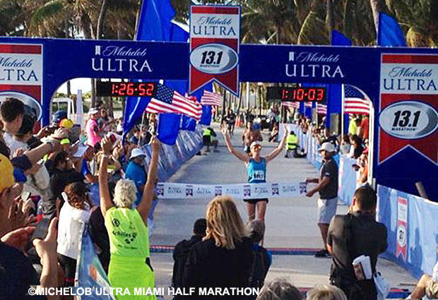 Cave, the 2012 Ironman and Ironman 70.3 World Champion who is coming off a frustrating injury-plagued 2013 season, struck a happy note to open 2014 with a victory Sunday at the Michelob Ultra Miami Beach Half Marathon. Cave finished in 1:26:53 with a 4:21 margin of victory over women’s runner-up Michela Santini of Italy. Cave also finished 14th overall and 14:57 behind men’s winner Dan Smith of Miami Beach.