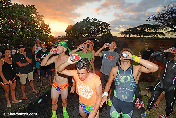 Already yearly end-of-the-season rituals for many iconic triathlon communities – including Boulder, Bend and Encinitas – triathlon pundit, The Real Starky and Dark Mark hosted the first ever Kona Beer Mile. On the evening of the Ironman World Championships, and with an invitation only field assembled at a top secret location within a few miles of the Kailua-Kona Pier to find out who would be crowned champion.