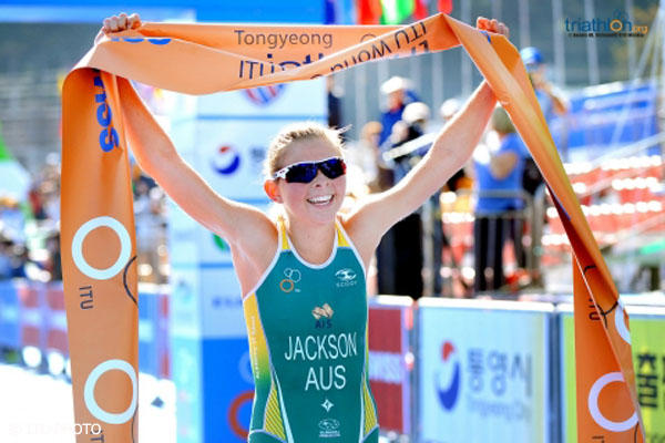 In the final ITU World Cup of the year in Tongyeong, South Korea, Emma Jackson of Australia repeated her 2013 title and Henri Schoeman of South Africa won his first World Cup victory.