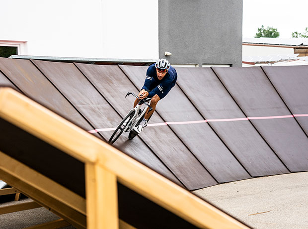 Both men will be shooting for the world best, currently held by Frodeno at 7 hours, 35 minutes. The swim is 2 loops of Grossen Alpsee Lake, outside of Immenstaad. The bike leg consists of out-and-back to the autobahn, which will be closed to traffic for 16.5km in each direction. The riders will complete 5 laps and head back in. At the end of each section, there’s a sort of half-velodrome banked ramp that has been constructed to speed the turnaround. The course concludes with a 4-lap run.