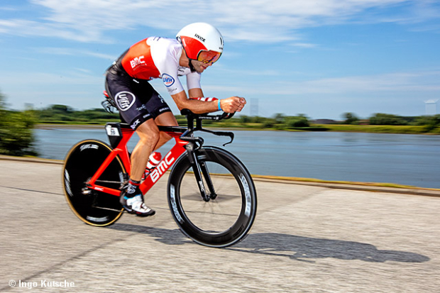 The former Kona bike course record holder (pictured above at this year’s race in Kona – photo by Eric Wynn) splits his professional career between triathlon and pro bike racing as part of the INEOS Grenadiers. Wurf routinely rides his way through the field in any triathlon he’s competing in, so he doesn’t spend much time having to worry about getting too close to the wheel ahead.