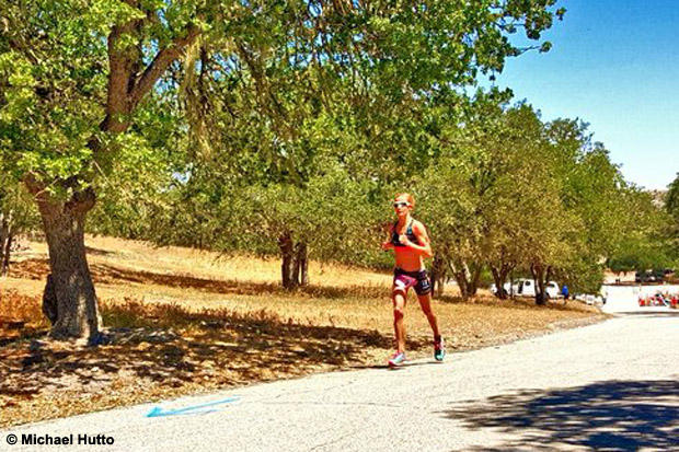 Thomas Roos of Palo Alto led the swim in 25:16 with Jesse Thomas 11th, just 58 seconds later. By the end of the 2 mile run to the transition, Thomas took the lead starting out on the bike leg. In the first 20 miles, Wildflower race record holder Terenzo Bozzone of New Zealand and Jason Pederson of Porter Ranch, California joined Thomas at the front and the trio had a 1:30 lead on Thomas’s fellow Bend, Oregon friend Matt Lieto and Ben Collins of Chicago, Illinois.