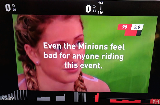 This was my third year to take part and I noticed a few new additions this year on Sufferfest’s app. Each stage had it’s own specific video in the app’s library. Sufferfest’s staff did the dirty work in editing together videos when a stage called for two videos to be completed back to back. This saved the rider the hassle of having to do this on the fly while cross-eyed and seeing double. This was the case for the weekend stages including Stage 1 (Who Dares + The Rookie), Stage 2 (The Shovel + Power Station), Stage 8 (Butter + Thin Air) and Stage 9 (Kitchen Sink).
