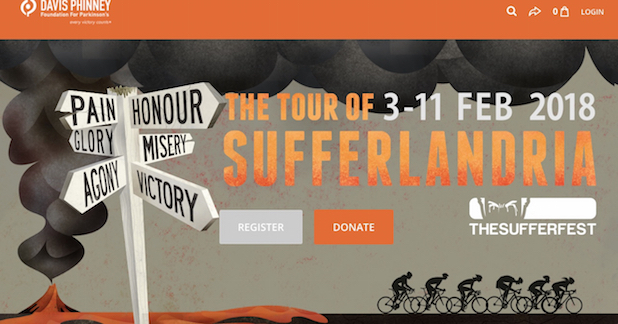 To officially enter the Tour of Sufferlandria required a minimum $10 donation to their preferred charity partner, Davis Phinney Foundation (DPF), to assist those living with Parkinson's Disease. Over the past few years of Tour of Sufferlandria over $600,000 has been contributed to DPF.