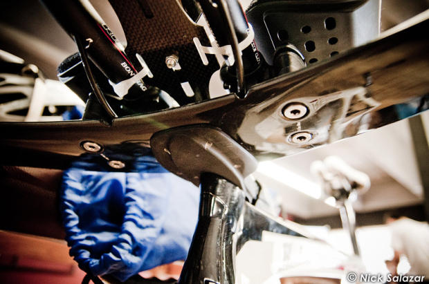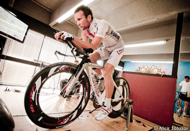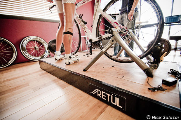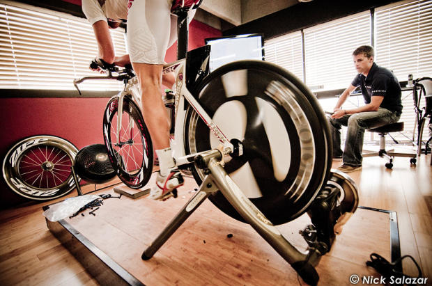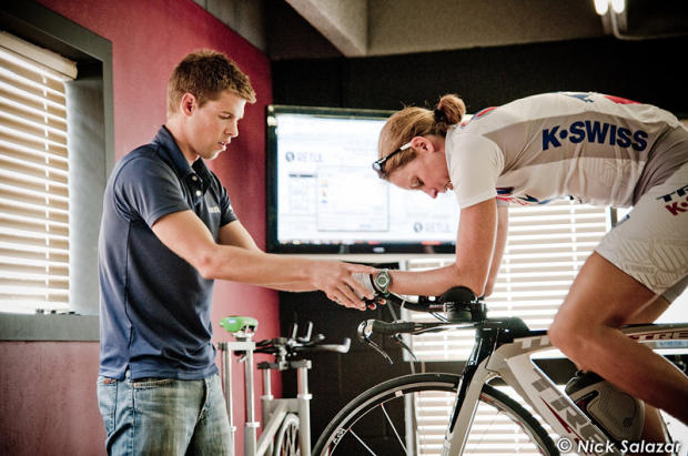 Both athletes had been riding prototype Speed Concept bikes, and had already taken multiple trips to Retul's Boulder studios to be fitted. Now that the production bikes and front ends are available, they returned to the studio so that fitter Mat Steinmetz could replicate their positions on the new machines.