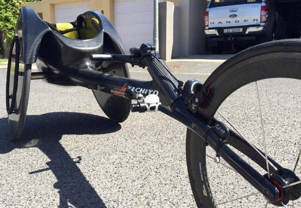 Above are TriRig brakes on a handcycle.