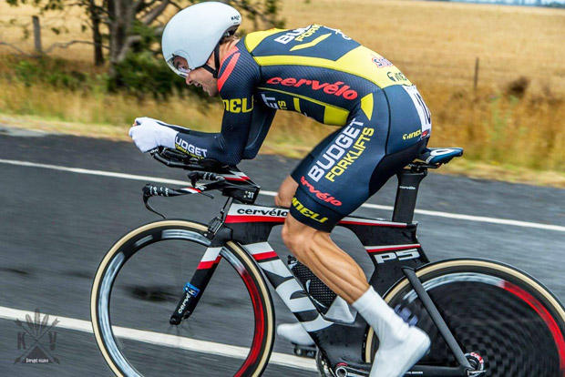 Above is great TT and hour record rider Jack Bobridge, rockin' TriRigs on a P5 more typically seen sporting Magura hydraulic center-pulls.