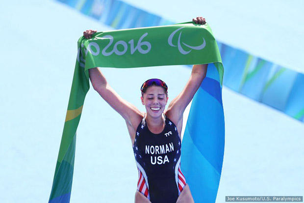 In women's paratriathlon debut at the Paralympics, Grace Norman of the U.S. in PT4, Allysa Seely of the U.S. in PT2, and Katie Kelly of Australia in PT5 won the first women’s Paralympic paratriathlon gold medals.