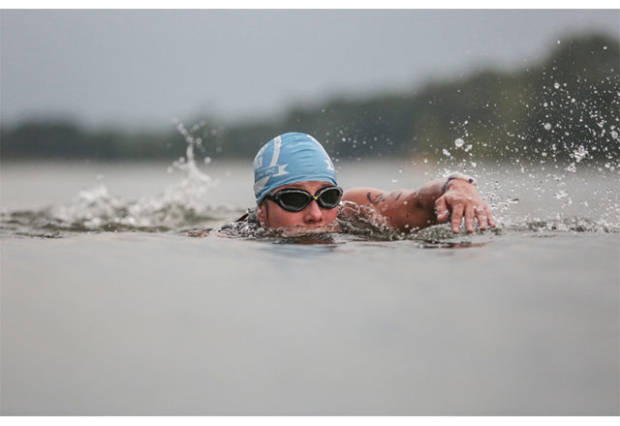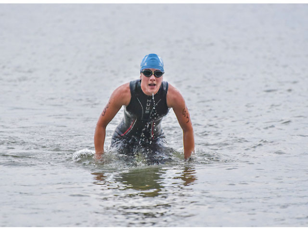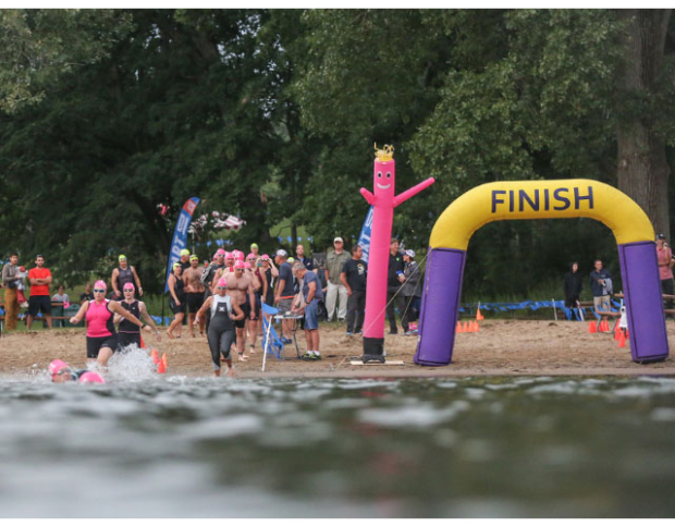 The swim took place in Portage Lake, the water was 76 degrees, the air temp 70 at the start, good for either a wetsuit or no-wetsuit swim. It was a streamed start, which I like, no cage fighting for the first 200 yards.