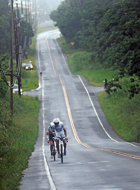 The 171-mile Day 2 bike leg of the Ultraman World Championship left Christian Isakson and Scott McDermott injured in crashes and out of the race. A wind gust pushed women’s leader Staci Studer into a guard rail but she emerged uninjured and managed to finish with the lead. And a tailwind helped most riders in the climb up and over the Kohala range.